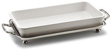 Die handgefertigte Servierschale mit passendem Tablett aus der CONVIVIO-Serie verbindet weiße Keramik mit einem eleganten Zinnrand: ideal für Dips, Snacks oder kleine Speisen.